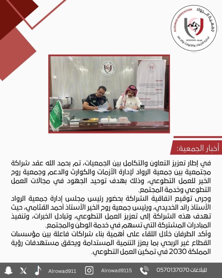 تعلن جمعية الرواد لإدارة الأزمات والكوارث والدعم عن قبول مشاركتها في فعالية (تطوع تون)بمدينة جدة، والتي ينظمها المركز الوطني لتنمية القطاع غير الربحي، وذلك يوم الإثنين الموافق 10 نوفمبر 2025م في فندق هيلتون جدة. تأتي هذه المشاركة بهدف تعزيز التكامل…